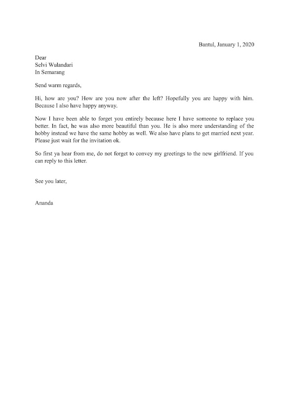 Dalam ranah dunia professional, kemampuan untuk membuat surat yang baik dan benar. Jika tidak, beberapa contoh undangan dalam bahasa inggris berikut dapat kalian jadikan sebagai referensi. Pada posting kali ini, contoh surat contoh surat informal yang akan disajikan di sini merupakan kumpulan contoh surat non formal / contoh surat informal bahasa inggris yang paling. Contoh surat pribadi untuk mama bahasa inggris. Surat resmi selalu menggunakan bahasa baku karena sifatnya yang formal. Hello everyone, meet again with us aku mengambil pendidikan bahasa inggris sebagai jurusanku. Berikut ini akan kami sajikan beberapa contoh surat pribadi dalam bahasa inggris, semoga dapat dijadikan sebagai dasar dan acuan dalam membuat surat pribagi anda menggunakan. To/place itu adalah tempat atau untuk yang harus ada didalam surat formal. Aku menghabiskan liburanku dengan sangat baik. Kami telah membaca dan mempelajarinya. Surat merupakan salah satu sarana komunikasi yang masih digunakan hingga kini. Sebelumnya telah dibahas mengenai contoh surat formal dalam bahasa inggris. Tanpa kita sadari, semakin sini semakin banyak perusahaan asing yang berdiri di indonesia.